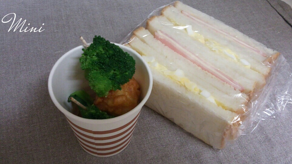 さすがに寂しいので、ブロッコリーと唐揚げを追加。