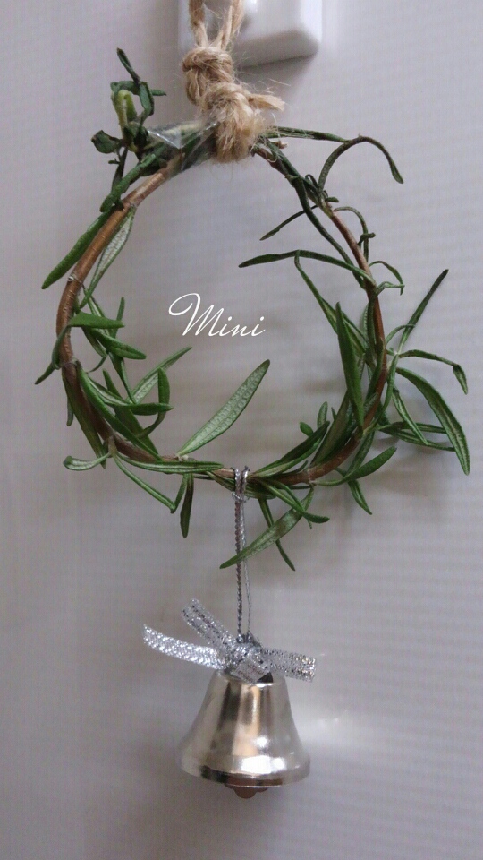 ローズマリーがすごく伸びてしまったので剪定していたら、息子が枝を嬉しそうに持って部屋へこもり、出てきたときには手にはかわいいリースが!!
