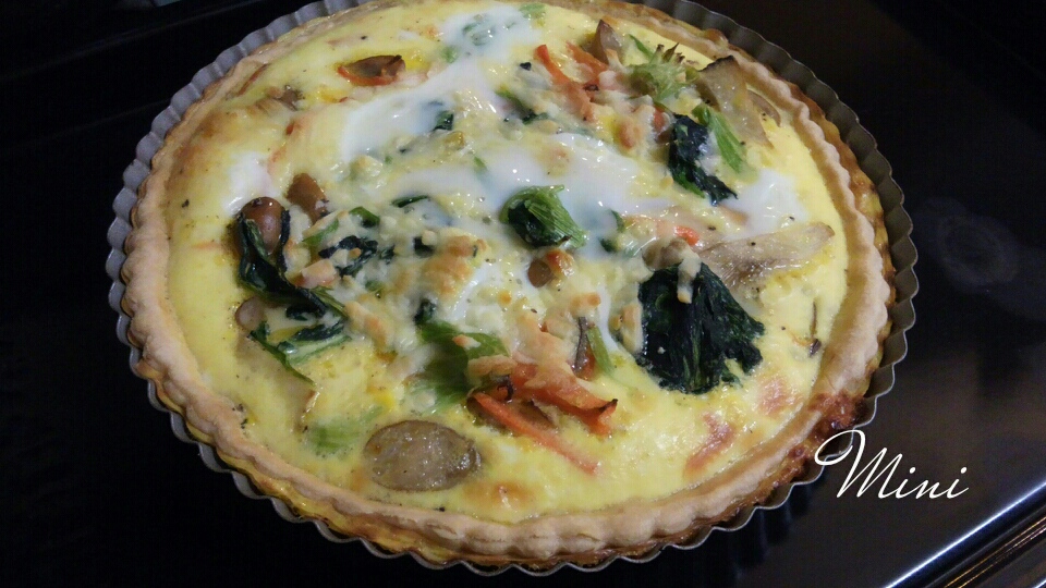 お友達のおうちに遊びに行ったら、お昼にキッシュを焼いてくれて、とても簡単そうにチャチャッと作り、しかもおいしかったから作ってみたいと思って半年が経ちましたね(笑)