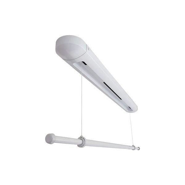 ただ、上はこれだけしか上がらないし、下もそんなに下げられないので、大人服は下の段ばかりになります。乾いた服だけならこれでもいいんだけど、室内干しとなると、これでは困るかなぁ。