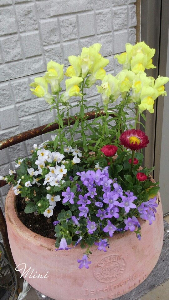 お店では、出来上がってる寄せ植えをチェックしつつ、色々とイメージを膨らませてかごの中でアレヤ、コレヤと組み合わせたりして買って帰るんだけどね、いざ植えてみると…なんかちがうのよね~不思議(笑)
