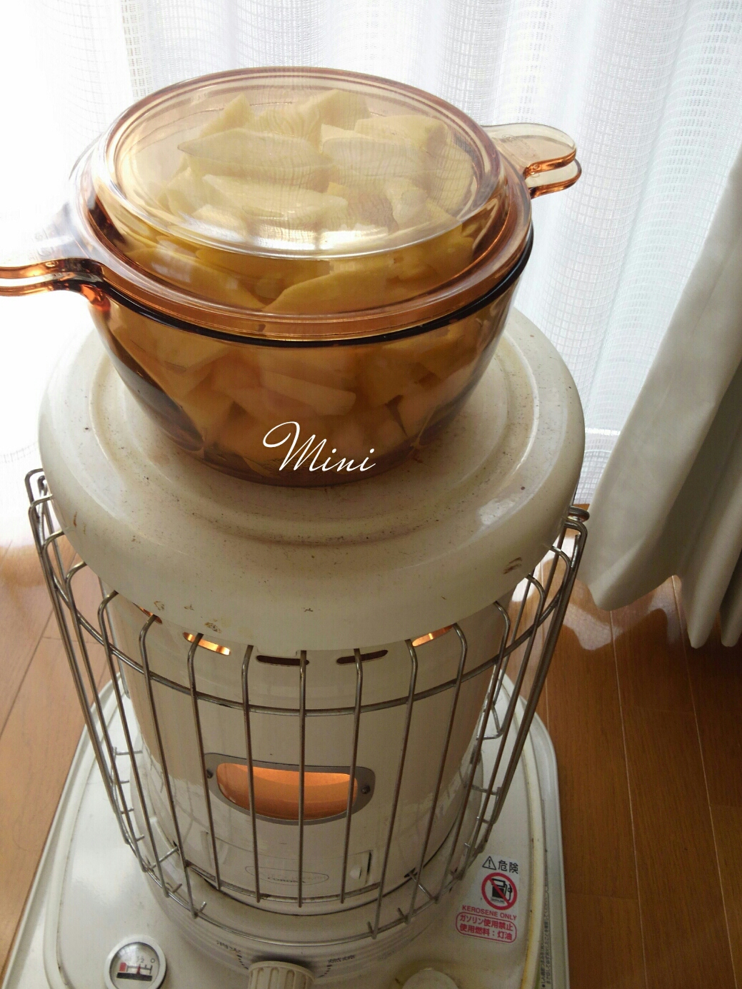 ストーブの上のヤカンのお湯を保温ポットにとっておいて、味噌汁に使ったり。
