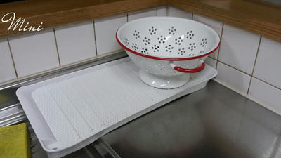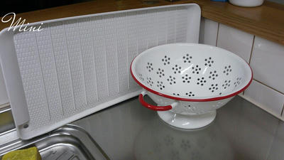 調理中は、野菜洗ったり、麺類の水切りに使うので、基本的には出しっぱなしです。